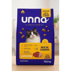 Melhor Ração Unna Premium 10,1kg Mix de Carnes Gatos Ração para gatos adultos Unna Alimento Premium sabor mix de carnes. Embalagem de 10,1 kg. Produto formulado por especialistas, desenvolvido para fornecer mais energia, auxiliar na saúde do trato intestinal, reduzir odores e melhorar a consistência das fezes. Indicado para gatos adultos, oferece um alimento completo e balanceado. Marca: Não Informado