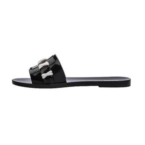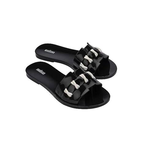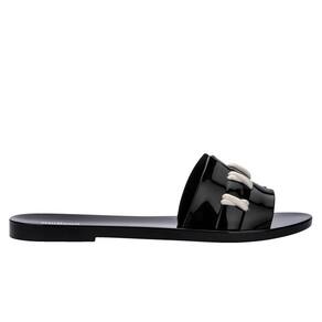 Chegou a Melissa Ana Slide, um shape inédito, super feminino e despojado. O modelo conta com uma tira única e larga no cabedal, que tem como destaque o detalhe que imita costuras em X na tira. Com uma proposta delicada, insere um toque de informação de moda ao look e funciona em diversas ocasiões e combinações.