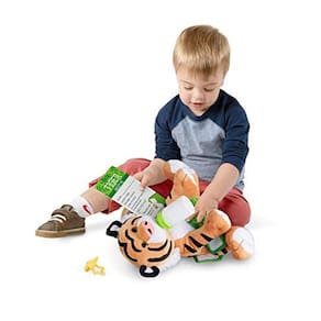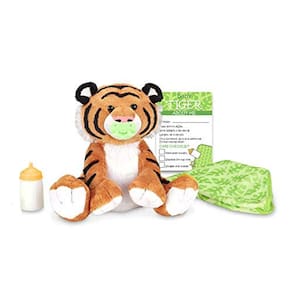 Aconchegar-se com o adorável Animal de pelúcia Melissa & Doug Baby Tiger! Este pequeno filhote listrado laranja e preto com pele de poliéster macio e sedoso tem aproximadamente 11 polegadas de altura e vem tudo para cuidar do bebê – uma chupeta removível e mamadeira de bebê caber na boca, e há uma fralda de pano aconchegante para trocar! Um cartão de atividade reutilizável tem um certificado de adoção para preencher, uma lista de cuidados e fatos divertidos sobre filhotes de tigres na natureza! Crianças de dois anos ou mais vão adorar cuidar de seu próprio animal bebê.