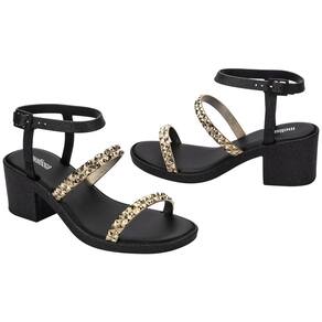 A Melissa Glowing Heel 33824 é uma sandália de salto médio com 7 cm, feita de PVC Melflex. Possui palmilha em EVA e sola em PVC, com acabamento vulcanizado. Oferece flexibilidade, resistência e conforto, ideal para o público feminino adulto que busca estilo e praticidade.