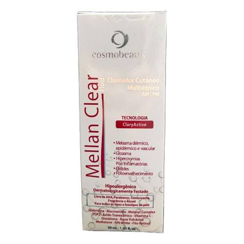 Mellan Clear Fluid é um concentrado clareador que atua nas hipercromias cutâneas em diferentes estágios: recentes, instaladas e recorrentes. Desenvolvida com fórmula concentrada em ingredientes que agem de forma sinérgica para reduzir e controlar a formação da tonalidade irregular da pele. A tecnologia ClaryActive atua nos principais mecanismos envolvidos no desenvolvimento das hipercromias cutâneas. A sinergia de ativos associada a fitocomponentes promovem a renovação da pele um clareamento eficaz e seguro, podendo ser aplicado de dia e de noite.