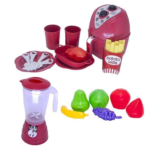 Menino chefe kit cozinha air fryer fruta liquidificador 19pç Produto em O kit vem com air fryer, louça, comidinhas, frutinhas e liquidificador - 1 air fryer de aproximadamente 13cm de altura x 9 cm de largura com gaveta removível Com 2 pratos, 2 garfos, 2 facas, 2 copos, 1 batatinha, 1 frango --------------------------------------------------------------------------------- - 6 unidades de frutas --------------------------------------------------------------------------------- - 1 liquidificador de aproximadamente 17 cm de altura x 9,5 cm de largura --------------------------------------------------------------------------------- Informações adicionais: Não recomendável para menores de 03 anos por conter partes pequenas que podem ser engolidas. Imagens fotografadas pela equipe click compras para uso exclusivo da mesma. O uso não-autorizado das imagens expostas estará sujeito a sanções previstas em lei de direitos autorais. Certificado pelos órgãos autorizados - ocps organismos de certificação de produtos Mais informações as cores, ítens e embalagem poderão variar conforme atualização do fabricante. Imagens meramente ilustrativas. Não recomendado para crianças menores de 3 anos por conter partes pequenas que podem ser engolidas ou aspiradas. Produto certificado pelo inmetro: ce-bri/innac - 00297-01a nm300/2002 Clickcompras brinquedos Marca: Não Informado