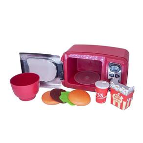 - 1 microondas 20 cm de comprimento x 10,5 largura x 12 cm altura não emite som e luz Com 1 forminha, 1 copinho de refrigerante, 1 balde de pipoca, 1 hambúrguer que se desmonta