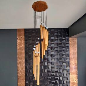 Ótimo para decorar o ambiente externo de sua casa, feito de bambu, esse mensageiro dos ventos é muito resistente e aguenta muito vento. o som que espalha energia positiva e traz equilíbrio e tranquilidade ao ambiente. Sino dos ventos tem como finalidade principal além do som agradável, energizar o ambiente, seja pelo som que provoca, seja pelo seu movimento, favorecendo a harmonia no ambiente.