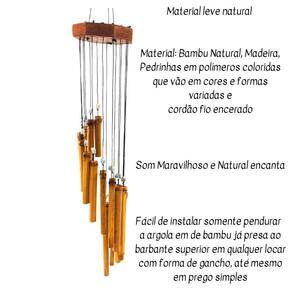 Ótimo para decorar o ambiente externo de sua casa, feito de bambu, esse mensageiro dos ventos é muito resistente e aguenta muito vento. o som que espalha energia positiva e traz equilíbrio e tranquilidade ao ambiente. Sino dos ventos tem como finalidade principal além do som agradável, energizar o ambiente, seja pelo som que provoca, seja pelo seu movimento, favorecendo a harmonia no ambiente.