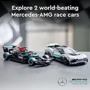 PRODUTO INTERNACIONAL. Os conjuntos de LEGO Speed Champions são a maneira perfeita de colocar as mãos em réplicas autênticas dos veículos mais incríveis do mundo. Agora, com o Mercedes-AMG F1 W12 e o Performance & Mercedes-AMG Project One (76909) kit de construção, as crianças e fãs de corrida podem colecionar e explorar dois carros de corrida fenomenais.