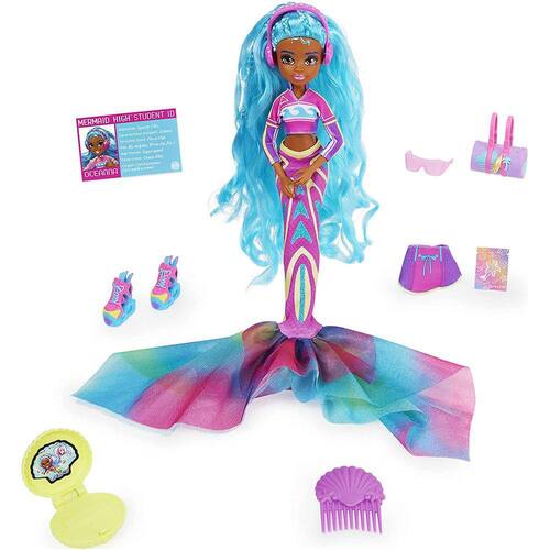 Mergulhe no mundo de Mermaid High, onde contos de lendas de avistamentos de sereias vagam pelos corredores! Melhores amigas Finly, Searra, Oceanna e Mari estão fazendo ondas com seus estilos únicos, mas eles têm um grande segredo. São sereias! Conheça Oceanna: a garota esportiva e chique do grupo. Esta boneca de moda de brinquedo de 10,5 polegadas apresenta uma fabulosa cauda sereia removível com padrões os e detalhes neon, um top surfwear, cabelo azul oceânico fluindo com tranças e quatro acessórios de boneca, incluindo uma duffle de praia, fones de ouvido shell e um acessório surpresa escondido na concha do mar. Jogue a casca em uma tigela de água morna e observe como ela magicamente abre, revelando um acessório para adicionar ao look de Oceanna! Com sua cauda de sereia brilhante inspirada em roupa de mergulho, além de roupas extras de boneca para a terra, Oceanna está pronta para uma peça emocionante 2-em-1. Use sua imaginação para criar suas próprias aventuras de sereia, depois troque a barbatana de Oceanna pelo seu look Mermaid High: uma saia combinando com seu top athleisure e tênis da moda com detalhes de onda e aberturas laterais! A concha do mar até se torna um laptop, a maneira perfeita de melhorar seu jogo de contar histórias do ensino médio. Com nove pontos de articulação, pose Oceanna enquanto você joga histórias intermináveis mermazing. Estilo O lindo cabelo da Oceanna com o pente e saiba mais sobre sua figura em sua ID Sereia Alta Estudante! Bonecas de alta moda sereias fazem grandes presentes de sereia para meninas de 4 anos ou mais. Colete todos os brinquedos de garotas de luxo da Mermaid High (bonecas cada uma vendidas separadamente) e experimente barbatanas, moda e amizade tão profundas quanto o oceano! Estas bonecas sereias são destinadas para brincar de mentira e não são adequadas para uso na água. Faça um respingo no Mermaid High com a boneca oceanna de luxo!