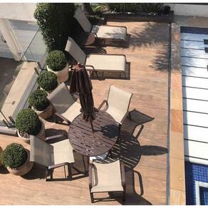 Seu design ripado valoriza a decoração de jardins, varandas, sacadas, áreas gourmet e piscinas, trazendo sofisticação e versatilidade. Ideal para receber amigos e familiares com conforto e estilo.