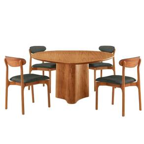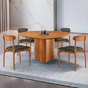 As 4 cadeiras Noronha complementam o conjunto com uma expressao sublime de modernidade. Construidas em madeira macica, essas cadeiras exibem detalhes curvos que conferem uma estetica contemporanea e elegante. O assento e encosto estofados oferecem um conforto luxuoso, perfeito para momentos prolongados de convivencia ao redor da mesa. Os detalhes de madeira na parte de tras dos encostos adicionam um toque de charme rustico e autenticidade, criando um contraste harmonioso com o design moderno e sofisticado das cadeiras.