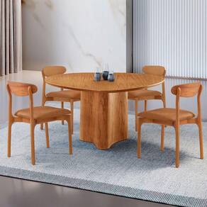 As 4 cadeiras Noronha complementam o conjunto com uma expressao sublime de modernidade. Construidas em madeira macica, essas cadeiras exibem detalhes curvos que conferem uma estetica contemporanea e elegante. O assento e encosto estofados oferecem um conforto luxuoso, perfeito para momentos prolongados de convivencia ao redor da mesa. Os detalhes de madeira na parte de tras dos encostos adicionam um toque de charme rustico e autenticidade, criando um contraste harmonioso com o design moderno e sofisticado das cadeiras.
