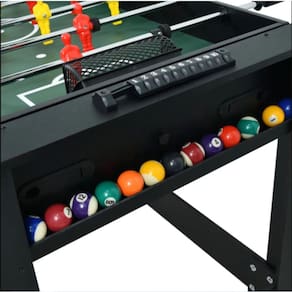 A Mesa 2 em 1 Winmax possui mesa de pebolim e mesa de sinuca em uma só mesa, oferecendo maior diversão e variedade para sua sala de jogos. Produzida em MDF, a mesa oferece maior resistência e durabilidade, garantindo a diversão por muito mais tempo. A embalagem contém a mesa com todos os acessórios para os dois jogos.Suas horas de diversão com a família e amigos, nunca mais serão as mesmas. Agora você pode proporcionar momentos felizes e divertidos com essa incrível Mesa 2 em 1 Pebolim e sinuca da Winmax. Uma diversão saudável e divertida, que consegue dar um fim imediato, aqueles momentos de tédio e impaciência. E transformar seu lar, em um lugar descontraído e agradável. A única do mercado que conseguiu unir os 2 jogos mais divertidos, em uma só mesa. Produzida e desenhada com MDF, material resistente e durável, para que a diversão nunca acabe. Principais Características:Fácil montagem e manuseio; Praticidade e versatilidade;Material de alta qualidade; Embalagem contém a mesa com todos os acessórios. Na Embalagem você poderá encontrar todos os acessórios disponíveis para você jogar os dois jogos; Não indicado para uso comercial (Clubes, bares, escolas etc). A Mesa 2 em 1 Pebolim e sinuca da Winmax, é mais indicada para uso doméstico (casas, sítios, fazendas), pois dessa forma é possível preservar a mesa, por muito mais tempo. Especificações Técnicas:Cor: Preto Material: MDF Peso Bruto: 31,3 Kg Peso Líquido: 29 Kg Medidas: 137 cm X 60,5 cm X 81,5 cm Tamanho da Embalagem: 134 cm x 66 cm X 21,5 cm Conteúdo da Embalagem: Mesa 2 em 1 + Todos os acessórios para os 2 jogos. Garantia: 03 meses * Imagens meramente ilustrativas Por que adquirir um produto Ahead Sports? Sabemos que você busca qualidade por um preço justo, é por isso que nos preocupamos com você, e temos como missão entregar o mais alto padrão de qualidade em nossos produtos. É por isso que estamos, há mais de 11 anos no mercado, e com milhares de clientes satisfeitos que tiveram suas vidas transformadas através dos nossos produtos. Somos uma das únicas empresas que consegue reunir em nossos produtos: inovação, design, qualidade, alta performance e durabilidade. É por isso que nosso objetivo principal é oferecer ao cliente mais do que um produto, é entregar a experiência com nossa marca. Para isto buscamos incansavelmente a excelência em nossos serviços. Live Ahead, Live Sports! Descrição Curta Diversão para amigos e família ? Agora você pode ter o melhor do pebolim e da sinuca na sua casa, para se divertir e competir de maneira saudável e divertida com amigos e familiares, proporcionando horas de diversão e risadas. Fácil e Versátil de Transportar ? Possui um material de fácil locomoção para você transportar por sua casa facilmente. Design Impecável - A Mesa 2 em 1 Pebolim e sinuca da Winmax possui um acabamento impecável em toda sua estrutura. Garantia de 90 dias ? Sua mesa possuí uma garantia do fabricante de 90 dias. Trazendo mais segurança para você.
