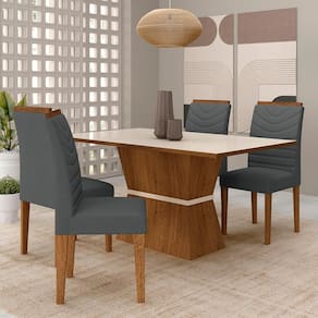 Mesa 4 Cadeiras 1,36 Odessa Freijó/off Premium/suede Cinza - M.a
