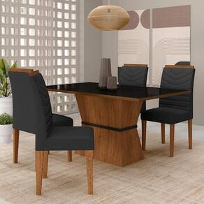 Detalhes Técnicos das Cadeiras -Assento e Encosto Tapeçados, Estofados e Fixos -Peso Suportado da Cadeira:90KG -Facilidade da Montagem:Média -Tonalidade da Cadeira:Freijó/Suede Preto -Espuma do Encosto:D14 -Espuma do Assento:D16 -Tipo de Pintura:UV Texturizada -Material da Estrutura:MDF 25/18mm -Medida da Cadeira:100CMx44CMx50CM