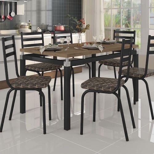Jogo de Mesa Malva 136 cm X 80 cm Tampo BP Com 6 Cadeiras Artefamol Produto: Conjunto de mesa compacto, com um desing inovador que traz requinte e praticidade para sua casa. Estrutura de Aço Carbono, com tampo BP Nature, cadeiras com estrutura de Aço Carbono com assento de MDP revestido de Courvin e espuma 30mm. Dimensões da Mesa: Altura: 75 cm Largura: 80 cm Profundidade: 136 cm Peso: 43,738 Kg Dimensões da Cadeira: Altura: 91 cm Largura: 40 cm Profundidade: 48 cm Atributos do Produto: Material da Estrutura: Aço Carbono Espessura: 103 mm Material da Base: Aço Carbono Espessura: 90 mm Materiais do Tampo: BP Espessura: 30 mm Número de Pés: 4 Pés Material: Aço Carbono Acabamento da Mesa: Pintura Epóxi a Pó Peso Maximo Suportado: 10 Kg Quantidade de Lugares: 6 Características da Cadeira: Material da Estrutura Aço Carbono Acabamento: Fosco Material do Enchimento do Assento: Espuma D30 Material do Revestimento: Courvin Material do Pés: Aço Carbono Largura dos Assentos: 35 Peso Suportado Máximo das Cadeiras: 100 kg Cuidados: Limpar com pano levemente umedecido com água Necessita Montagem: Sim Observações Importantes: A Combo Stock não se responsabiliza pela montagem ou desmontagem dos produtos (que deverá ser feita por um profissional qualificado). Estes serviços não estão inclusos nos valores dos mesmos. Pode haver alguma diferença de tonalidade entre as imagens do anúncio e o produto real, por conta do tratamento de imagens e a calibração de cores do seu monitor. No ato da compra, certifique-se de que as medidas do produto estão adequadas aos elevadores, portas e corredores do local da entrega, visto que não fazemos a montagem ou desmontagem de portas ou janelas, transporte pela escada ou içamentos pelo lado de fora do prédio. Ao receber a mercadoria, o cliente deve verificar as condições da embalagem, caso haja alguma avaria NÃO assine o comprovante de recebimento. Em casos de Edifícios ou condomínios, o produto será entregue pela transportadora nas respectivas portarias (porteiros) que deverão ser avisados da entrega pelo comprador. Para quaisquer outras dúvidas entre em contato conosco nos nossos canais de atendimento. As imagens são meramente ilustrativas, não acompanham objetos de decoração e eletrônicos.