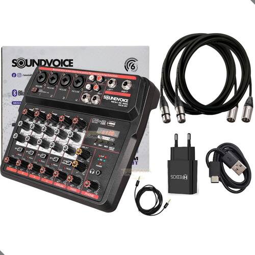 6 Canais Combo Entradas Balanceadas Xlr Ou P-10 Equalização de 2 vias grave e agudo por canal Efeito Reverb/delay 24 bits Entrada USB com display digital Gravação e reprodução direta em USB Interface de áudio Função Bluetooth Leds indicadores de pico +48v power Bivolt Conteúdo da embalagem: - 01 x Mesa de Som Compacta MC6-BT - 01 x Fonte USB - 01 x Cabo USB x MicroUSB - Cabo P3xP3 - 02x Cabos Balanceados Homologação Anatel: 007892012769 Marca: Não Informado