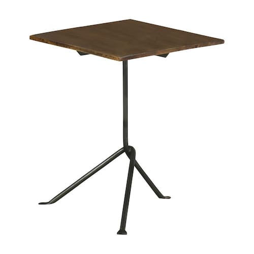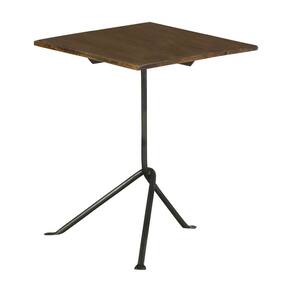 Mesa quadrada moderna Benjara de 20 polegadas, base de tripé de metal, madeira escura, marrom e cinza