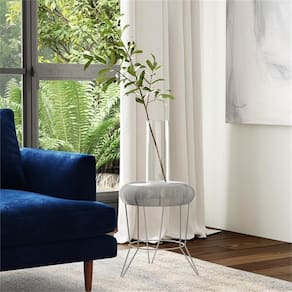 Tem acabamento niquelado. Características: Acabamento: acabamento niquelado Materiais: ferro Construído em 100% ferro em acabamento niquelado 3 pernas em forma de gancho de cabelo O design da parte superior do fio giratório A foto pode diferir ligeiramente do item real em termos de cor/acabamento devido à iluminação durante a sessão de fotos ou a tela do monitor. Limpe com um pano seco Especificações: Dimensões do produto: 15" W, 15" D, 18" H Produto Peso: 7 Capacidade de peso: 22 - Acabamento: acabamento niquelado - Materiais: ferro - Construído em 100% ferro com acabamento niquelado - 3 pernas em forma de gancho - Parte superior de arame cata-vento desenhar