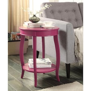 Acme Aberta Mesa de canto redonda de madeira com prateleira inferior em vermelho