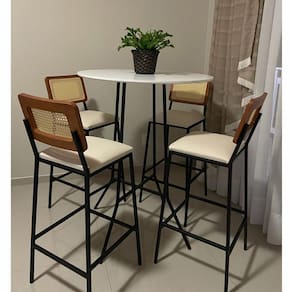Mesa Bistrô Gabi, seu tampo é produzido em MDF e sua estrutura em aço carbono com pintura feita em epóxi, com seu design diferenciado, por conter tampos redondos e/ou quadrados, ótima opção para compor áreas de festa e/ou até churrasqueiras.