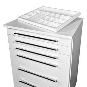5 (cinco) gavetas. Ter cinco gavetas em uma mesa auxiliar oferece um excelente aproveitamento de espaço, permitindo a organização eficiente de materiais e documentos. As gavetas proporcionam fácil acesso a itens essenciais, mantendo o ambiente arrumado e funcional. Além disso, essa quantidade de compartimentos facilita a separação de diferentes categorias de objetos, promovendo maior praticidade no dia a dia e otimizando o tempo de trabalho em consultórios e clínicas.