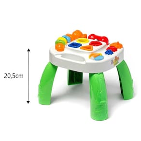 Brinquedo Play Time Mesinha Didática Verde Mesa Divertida Play Time Didática Cotiplás é um brinquedo que estimula o aprendizado das crianças pequenas. Conta com formas coloridas, encaixes e deslizantes personalizados que auxiliam no desenvolvimento motor e cognitivo. Recursos e atividades: - Blocos didáticos coloridos para encaixar nas formas geométricas; - Livro didático interativo, que incentiva a curiosidade e o aprendizado; - Centopeia deslizante colorida, que estimula a coordenação motora; - Engrenagens coloridas que giram, despertando a percepção visual e lógica; - Telefoninho com discador, para brincar de faz de conta e estimular a imaginação. - Produto 100% seguro e indicado para crianças a partir de 12 meses. - Ideal para brincar e aprender ao mesmo tempo. Informações: - Marca: Cotiplás - Código: 1996 - Faixa Etária: + 12 meses - Composição: Plástico - Código De Barras: 7896964619968 - Alimentação: Não - Altura da Mesa: 20,5cm Conteúdo da embalagem: - 1 Mesa Didática - 4 Formas Geométricas - 1 Telefone