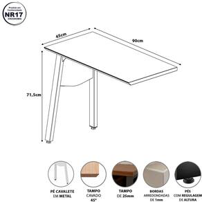 Moderna e funcional, a Mesa Auxiliar 90cm Industrial Executive possui tampo chanfrado e pés metálicos em cavalete, unindo resistência e estilo. Ideal para apoiar notebooks, impressoras ou materiais de escritório, amplia o espaço de trabalho e combina com outros móveis da linha Industrial Executive.