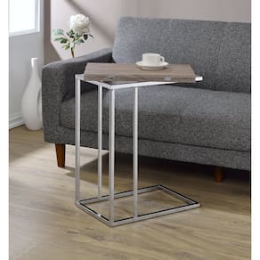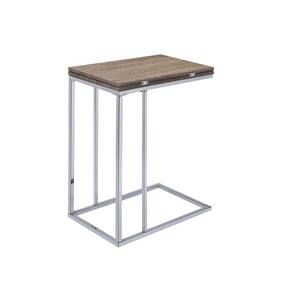 Mesa auxiliar Acme Denson con tapa rectangular giratoria de madera en roble gris y cromo. - Mesa rectangular - Tapa plegable y extensible - Tapa giratoria - Tapa en MDF - Base de forma geométrica - Base cuadrada de tubo metálico
