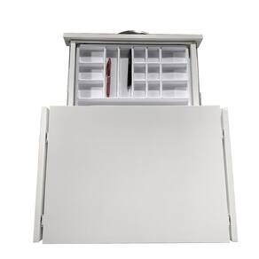 Ótimo para armazenar ferramentas de trabalho e de apoio. Fabricado em MDF da mais alta qualidade que garante sua durabilidade e resistência por um tempo muito maior. Confira toda nossa linha de produtos em nosso perfil. A ferragem da aba retrátil é fabricado em aço carbono e é de fácil manuseio. Com a mesa dobrável Deki o seu ambiente vai ganhar espaço!! Abre e fecha com o simples pressionar no dispositivo de travamento.