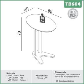 Acompanha o produto: - 01 mesa auxiliar oval modelo TB604 da Dalla Costa Garantia: - 6 MESES