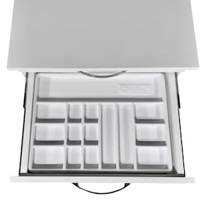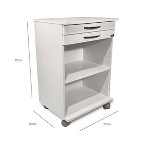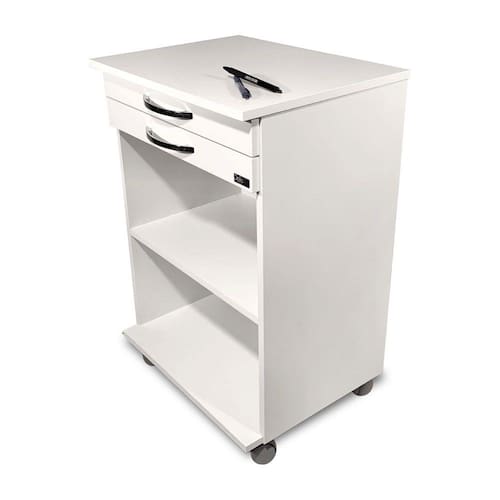 Sua estrutura retangular é acoplada com 4 rodízios para facilitar sua movimetação de alta resistência, não deixando marcas no piso, ela é compacta e ocupa pouco do espaço disponível. Conta também com 1 gaveta com organizador de utensílios odontológicos. Ah, sem contar, claro, duas prateleiras para você acomodar seus materiais maiores e eletroportáteis.