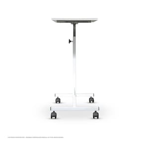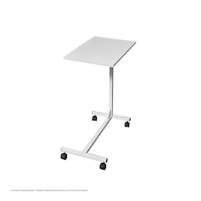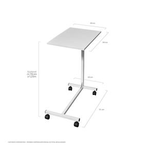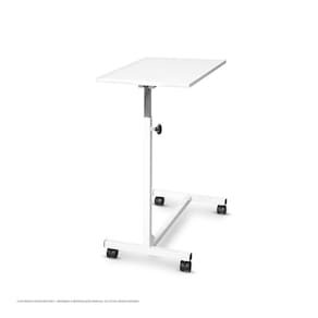 Mesa Auxiliar Para Refeição Hospitalar - Alimentação E Dieta- Coluna em tubo de aço carbono;- Montada sobre tripé em tubo de aço carbono;- Com rodízios de 2 em material termoplástico;- Haste em tubo de aço inox;- Altura regulável através de um manípulo;- Tampo em MDF na cor Branca;- Acabamento: pintado com Esmalte Sintético;- Dimensões: 075m Altura Mínima / 1,20m Altura Máxima. Marca: Hospicenter