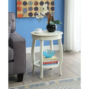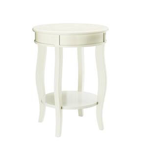 MadeiraMesa auxiliar redonda Acme Aberta de madera con estante inferior en color blanco antiguo. - Acabado: Blanco antiguo - Con estante - Almacenamiento abierto: Estante inferior - Tapa y faldón redondos de madera - Pata cabriolé de madera - Colores opcionales - Mesa con patas redondas