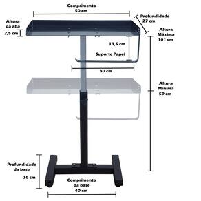 • Benefícios: - Portátil: Pode ser transportado caso seja necessário. É um produto leve, compacto e funcional. - Durabilidade: Construída com materiais de alta resistência para garantir uma longa vida útil. - Praticidade: Possui regulagens de altura, Suporte de papel e Regulagem de nível nos pés. - Estilo Moderno: Design elegante que complementa qualquer ambiente de trabalho. - Peso Suportado: Até 30 kg Distribuídos.