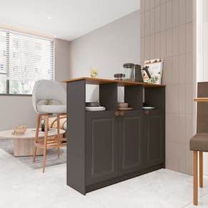 Seu acabamento em cinza proporciona um toque de modernidade e facilita a combinação com diferentes estilos de decoração. As dobradiças metálicas asseguram maior durabilidade e suavidade na abertura das portas.