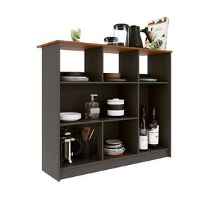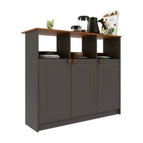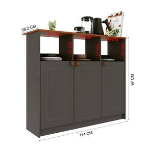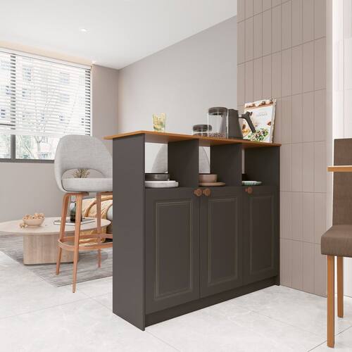 Mesa Bancada Balcão Ilha para Cozinha com 3 Portas e Nichos Cinza - Preto