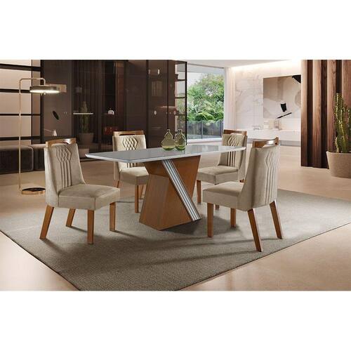Como o próprio nome diz, a Sala de Jantar é Bella. E o melhor é que traz o conforto e prazer que merecemos, para reunir a família e amigos. Faça de cada refeição única e especial. Pois além de moderna, possui o tampo de vidro temperado / serigrafado, que garante a segurança e durabilidade do produto e o tampo de MDF com acabamento na mesma cor da base deixa tudo chique. A sua casa fica muito mais completa, bonita e luxuosa!