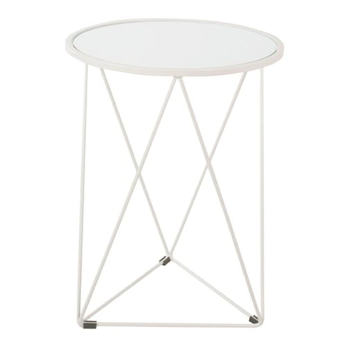 Mesa Benjara Accent, 18 polegadas, tampo redondo espelhado e base aberta de metal branco