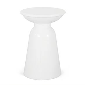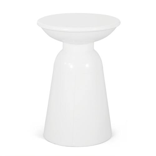 Mesa final externa Benjara Suma, tampo redondo de 15 polegadas, base de pedestal, ferro branco
