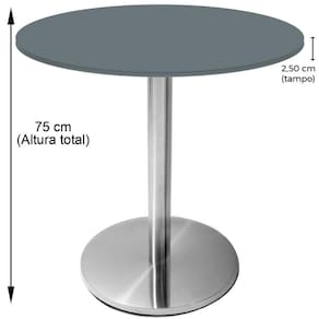 Mesa Beta Inox 75 Cm (altura) Disco Redondo Tampo Mdp Redondo 70 Cm (larg) X 2,50 Cm (alt) Grafito