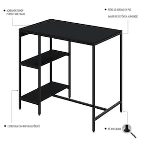 A Mesa Bistrô Active ACBI1060 é um produto prático com design estilo industrial, que pode ser utilizado em diversas composições, perfeito para fazer parte da sua cozinha ou edícula.Fabricado com estrutura em tubos de aço com pintura epóxi e MDP Perffect com Microban que inibe a proliferação de fungos e bactérias, além das fitas em PVC, conferindo muito mais qualidade ao seu móvel. Acabamento: Acetinado Acabamento da Base: Epóxi-Pó Acabamento do Tampo: Acetinado Ambiente Principal: Cozinha codigo_ean: 7909903285572 Complexidade da Montagem: Baixa: pode ser montado por uma pessoa sozinha Cor: Preto Onix/Preto Cor do Produto: Preto Ônix/Preto Design da Base: 4 Pés Dobrável: Não Escala de Brilho: Fosco Espessura do Tampo: 15 mm Extensível: Não Itens Inclusos: 1 Mesa, kit ferragens e manual de Montagem Linha ou Coleção: Active Manual de Especificação Técnica: https://product-hub-prd.madeiramadeira.com.br/844984/documents/722fa46f-02c4-4c03-9105-c31f8343e215534manualmesabistroyescasa.pdf Manual de Montagem e Instalação: https://product-hub-prd.madeiramadeira.com.br/844984/documents/b2d34283-5ff7-490c-b3b0-9c1367cecb2a533manualmesabistroyescasa.pdf Material da Base: Aço Material do Tampo: MDP Material Principal: Aço Medida da Base (A x L x P): 90,5 x 100x 60cm Medida do Tampo (L x C x E): 65x 100 x 1,5cm Necessita Montagem: Sim Origem do Produto: Nacional Peso: 14,9 kg Possui Base: Sim Possui Rodízio: Não Possui Suporte Giratório: Não Recomendações de Uso, Manutenção e Limpeza: Para a limpeza, utilize flanela seca ou pano macio levemente umedecido em água. Utilize um pano seco em seguida. Evite contato com produtos químicos (solventes, thinner, acetona, etc) e não utilize nenhum tipo de esponja de aço. Sistema de Montagem: Parafusos e Buchas Suporta Até (kg): 50 kg