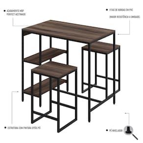 A Mesa Bistrô com 2 Banquetas Active ACCJBI1060.2B é um produto prático com design estilo industrial, que pode ser utilizado em diversas composições, perfeito para fazer parte da sua cozinha ou edícula. Fabricado com estrutura em tubos de aço com pintura epóxi e MDP Perffect com Microban que inibe a proliferação de fungos e bactérias, além das fitas em PVC, conferindo muito mais qualidade ao seu móvel. Medida da Mesa (A x L x P): 92x100x60cm Peso da Mesa: 14,9 kg Mesa suporta até: 50 kg Acabamento da Cadeira/Banco: Acetinado Acabamento da Mesa: Acetinado Ambiente Principal: Cozinha Cadeira/Banco estofada: Não Cadeira/Banco suporta até: 100 kg Complexidade da Montagem: Baixa: pode ser montado por uma pessoa sozinha Cor: Nogal/Preto Cor da Base: Preto Cor do Produto: Nogal/Preto Cor Secundária: Preto De Canto (Canto Alemão): Não Design da Base: 4 Pés Escala de Brilho: Fosco Espessura do Tampo: 15 mm Estrutura do Assento: MDP 15mm Formato do Tampo: Retangular Itens Inclusos: 1 Mesa, 2 Banquetas, kit ferragens e manual de montagem Linha ou Coleção: Active Manual de Especificação Técnica: https://cdn2.madeiramadeira.com.br/atributo/compace-dalex/1289716-manual-conjunto-mesa-bistro-active-banqueta-bistro-active.pdf Manual de Montagem e Instalação: https://cdn2.madeiramadeira.com.br/atributo/compace-dalex/1289717-manual-conjunto-mesa-bistro-active-banqueta-bistro-active.pdf Material da Base da Mesa: Aço Material da Estrutura da Cadeira: Aço Material do Tampo: MDP Medida da Cadeira/Banco (A x L x P): 60x38x36cm Medida do Tampo (L x C x E): 60 x 100cm Mesa Extensível: Não Necessita Montagem: Sim Origem do Produto: Nacional Peso da Cadeira/Banco: 3,79 kg Possui Apoio para Braços: Não Possui Apoio Para os Pés: Sim Quantidade de Lugares: 02 Recomendações de Uso, Manutenção e Limpeza: Para a limpeza, utilize flanela seca ou pano macio levemente umedecido em água. Utilize um pano seco em seguida. Evite contato com produtos químicos (solventes, thinner, acetona, etc) e não utilize nenhum tipo de esponja de aço. Sistema de Montagem: Parafusos e Buchas