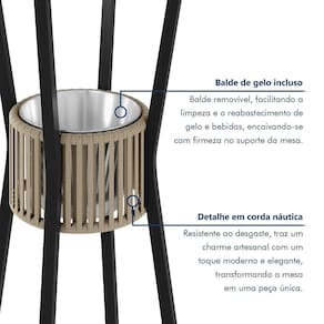 A Mesa Bistrô Bar combina praticidade e estilo para compor varandas, áreas gourmet ou espaços de lazer. Conta com tampo redondo em madeira maciça, estrutura em aço e acabamento de design moderno, que proporcionam resistência e durabilidade. Possui compartimento embutido para gelo, que ajuda a manter as bebidas na temperatura adequada durante o uso. Compacta e funcional, se adapta a diferentes tipos de ambiente, unindo elegância e praticidade.