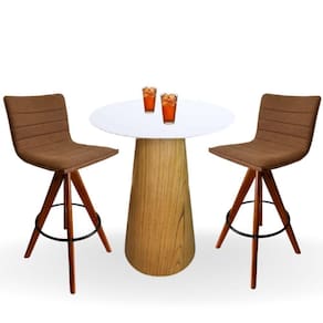 Mesa Bistrô Cone 60 cm Tampo Laca Branca Base Freijó