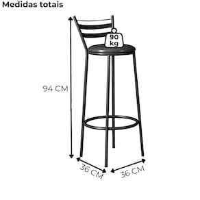 Peso máximo suportado: 90kg (cada unidade) da banqueta e 30kg na Mesa Bistrô.