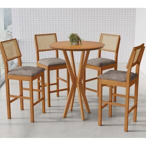 Mesa Estrutura em madeira maciça Tampo redondo em MDF de 25mm e acabamento Pu nas bordas Tampo madeirado CINAMOMO em pintura UV