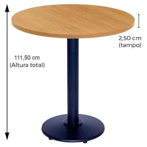 Mesa Bistrô Zeta Ferro Preto 111,50 Cm Alt Base Disco Tampo Mdp Redondo 70 Cm Larg X 2,50 Cm Samba