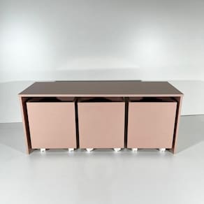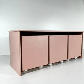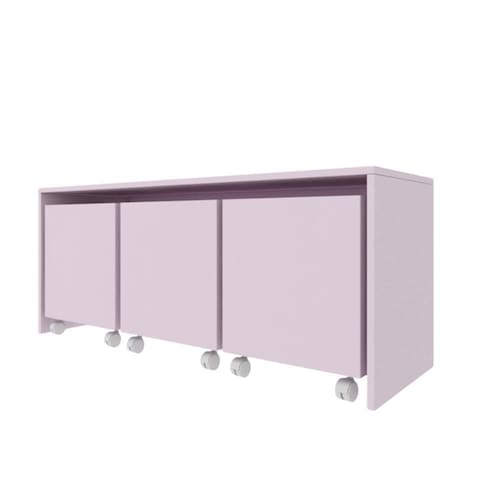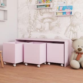 Mesa com 3 Baús organizador de brinquedos MDF/MDP 15mm cor rosa. Oferece durabilidade e resistência, com um excelente acabamento.