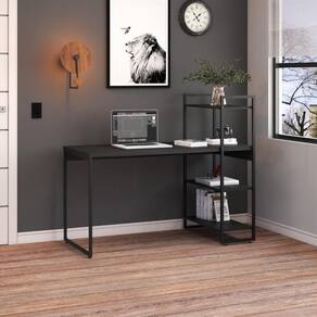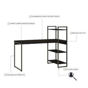 Mesa C/estante Alta 135x64x115cm C/03 Prateleiras Preto ônix / Preto ônix /