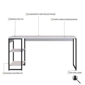 Mesa c/Estante Baixa 150X64X75cm C/02 Prateleiras Branco Chess / Est.Preta