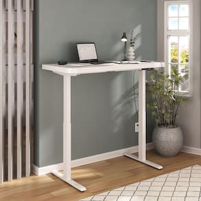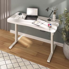 "Tampo em Tamburato 50mm com fita de borda ABS 1mm de espessura; - Proteção contra colisão; - Sistema anti dessincronização de elevação dos pés; - Proteção contra superaquecimento dos motores; - Fonte de alimentação bivolt 100v - 240v; - Plug 10A padrão NBR com cabo de aproximadamente 2,45 m de comprimento; - 1 unidade de comando com teclado integrado e display digital em cm ou pol.; - 1 entrada de alimentação USB-A e 1 entrada de alimentação USB-C posicionadas ao lado da unidade de comando; - Função memória para até 3 regulagens de altura personalizadas; - 2 colunas com motor integrado com velocidade de subida de 25 mm/s; - 4 sapatas plásticas com regulagem de altura; - Acompanha kit com presilhas adesivas para organização dos cabos; - Fixação com parafuso; - Capacidade de carga: 80 Kg distribuídos uniformemente no tampo;"